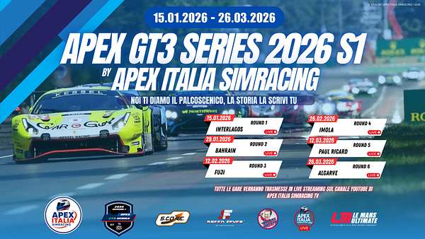 Apex Italia Simracing Γ¨ una community che organizza eventi singoli e campionati sui piΓΉ importanti simulatori di guida.
