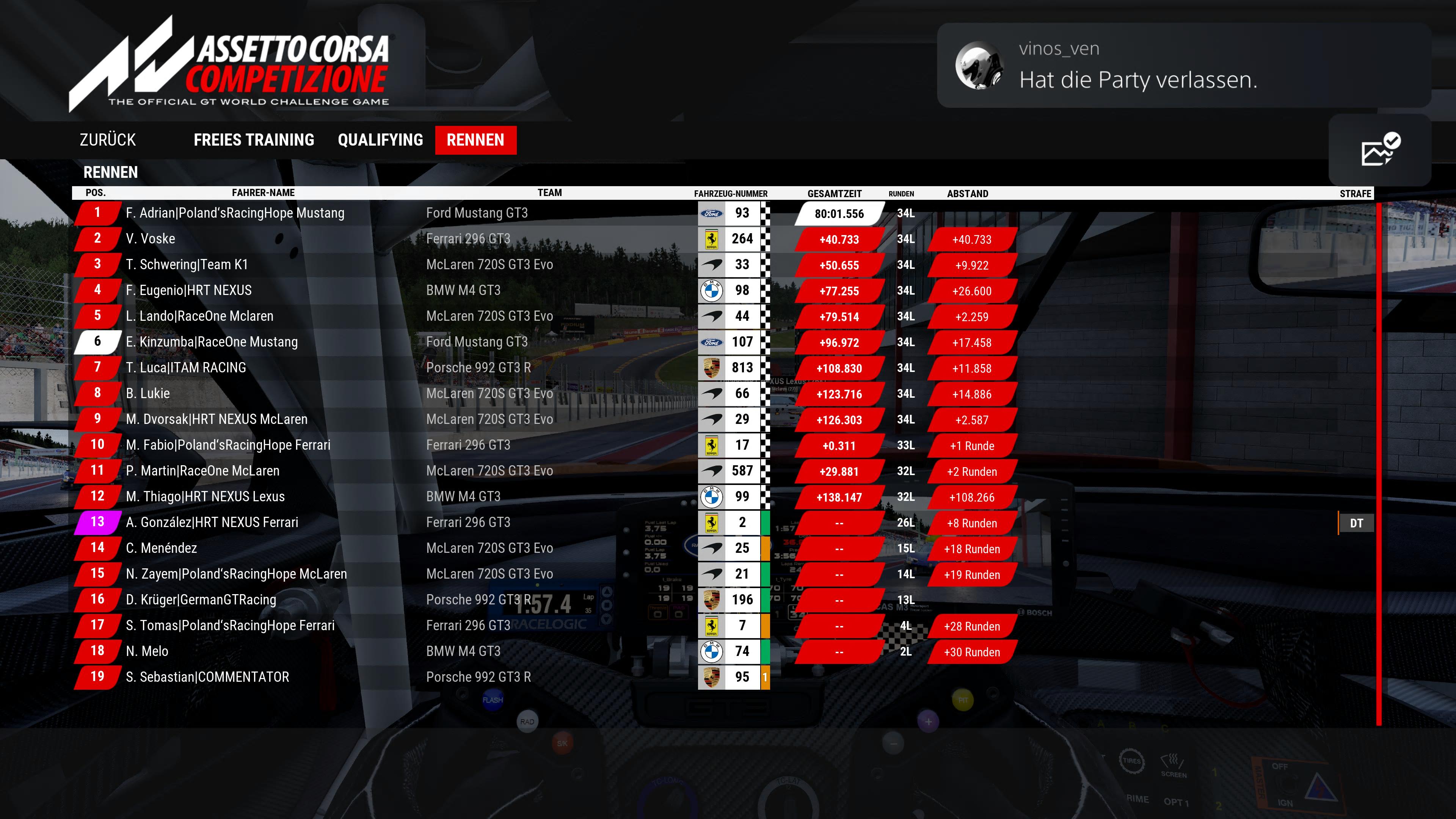 | P | Driver | Votes | Vehicle | Laps | Best Lap Laps | Time/Gap | PP | Pts | ||