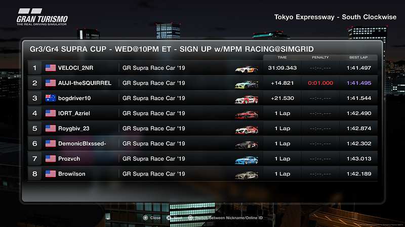 If a driver receives more than 9 Crashy votes in their last 10 races, they will receive a 50 minute time out and won't be able to register for races during this period.